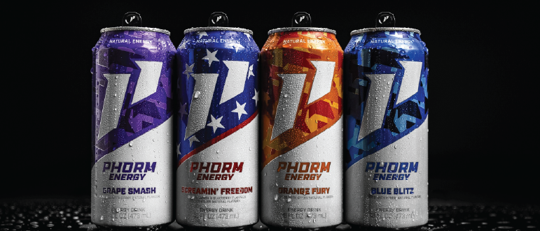 Phorm Energy is available in four flavors: Screamin’ Freedom, Grape Smash, Orange Fury and Blue Blitz. Each contains natural caffeine derived from green tea extract.