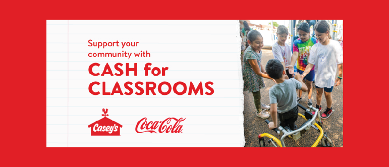 Casey’s said recent examples of Cash for Classrooms grants include: