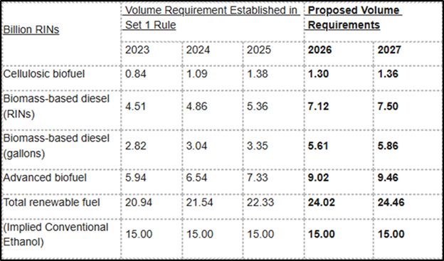 The U.S. Environmental Protection Agency (EPA) last week proposed new Renewable Fuel Standard (RFS) volume requirements for 2026 and 2027. The volume requirements are two years of compliance numbers.