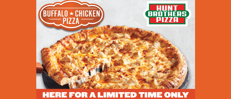 Hunt Brothers Pizza recently announced the return of its Buffalo Chicken Pizza, “one of its most popular limited time offerings,” starting January 19. The LTO originally launched in 2009.